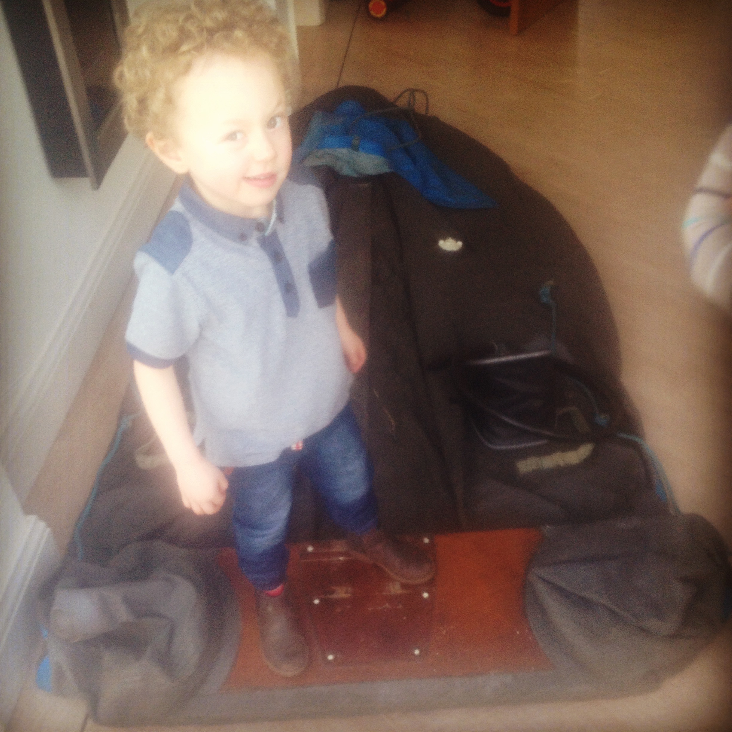 He charged around the room booming out, ‘Twinkle Twinkle, Chocolate Bar’, occasionally tooting on his orange trumpet, and releasing bubbles from his special bubble machine.