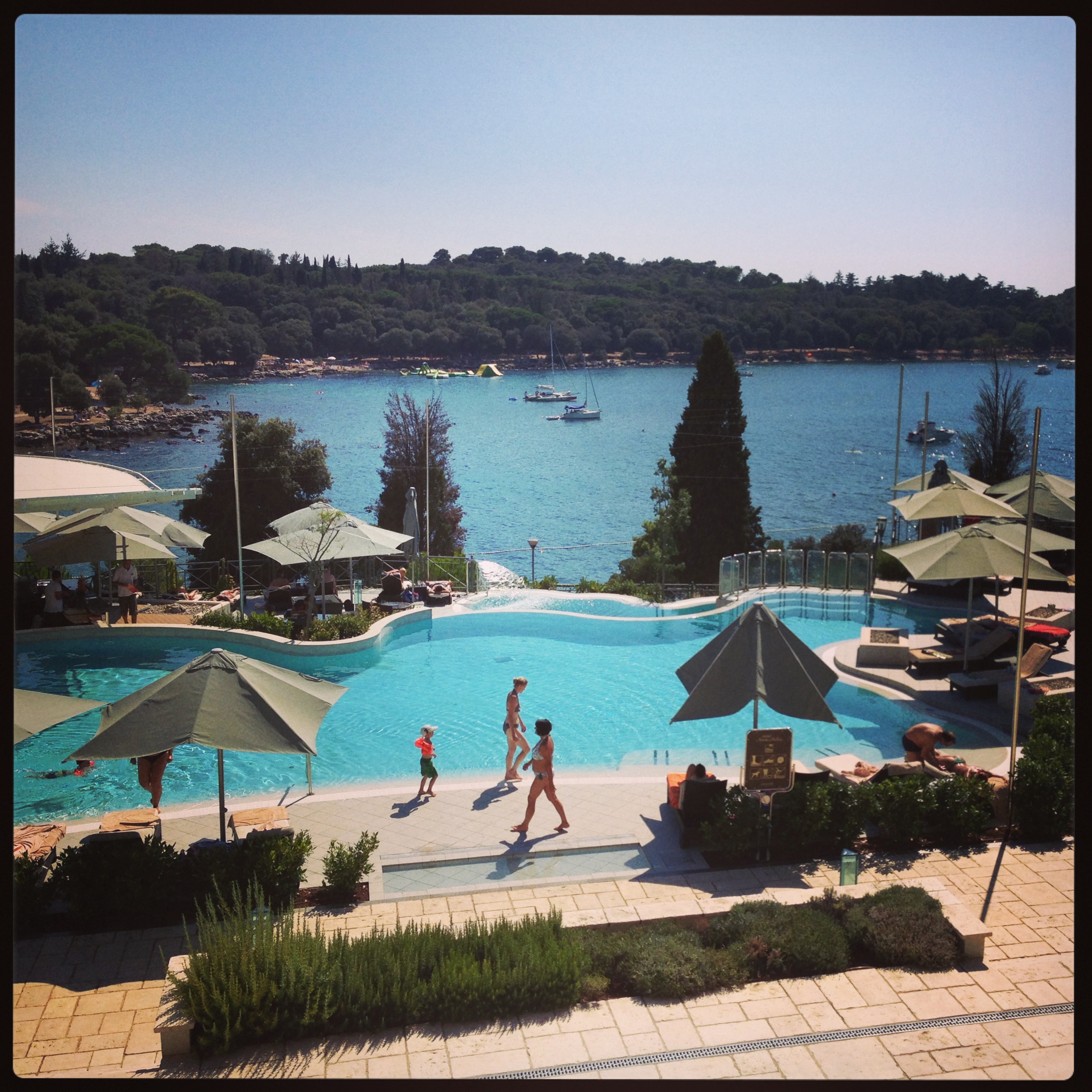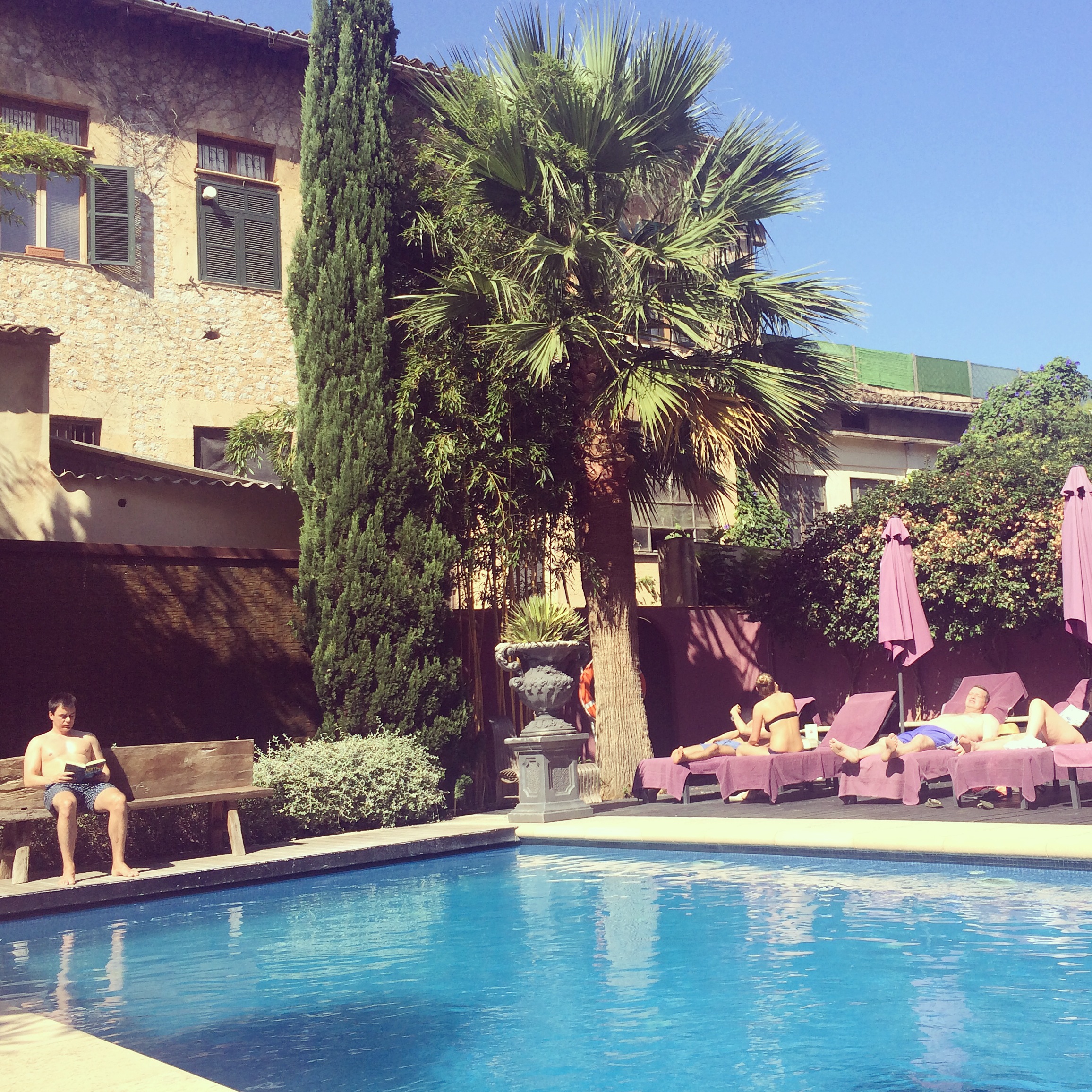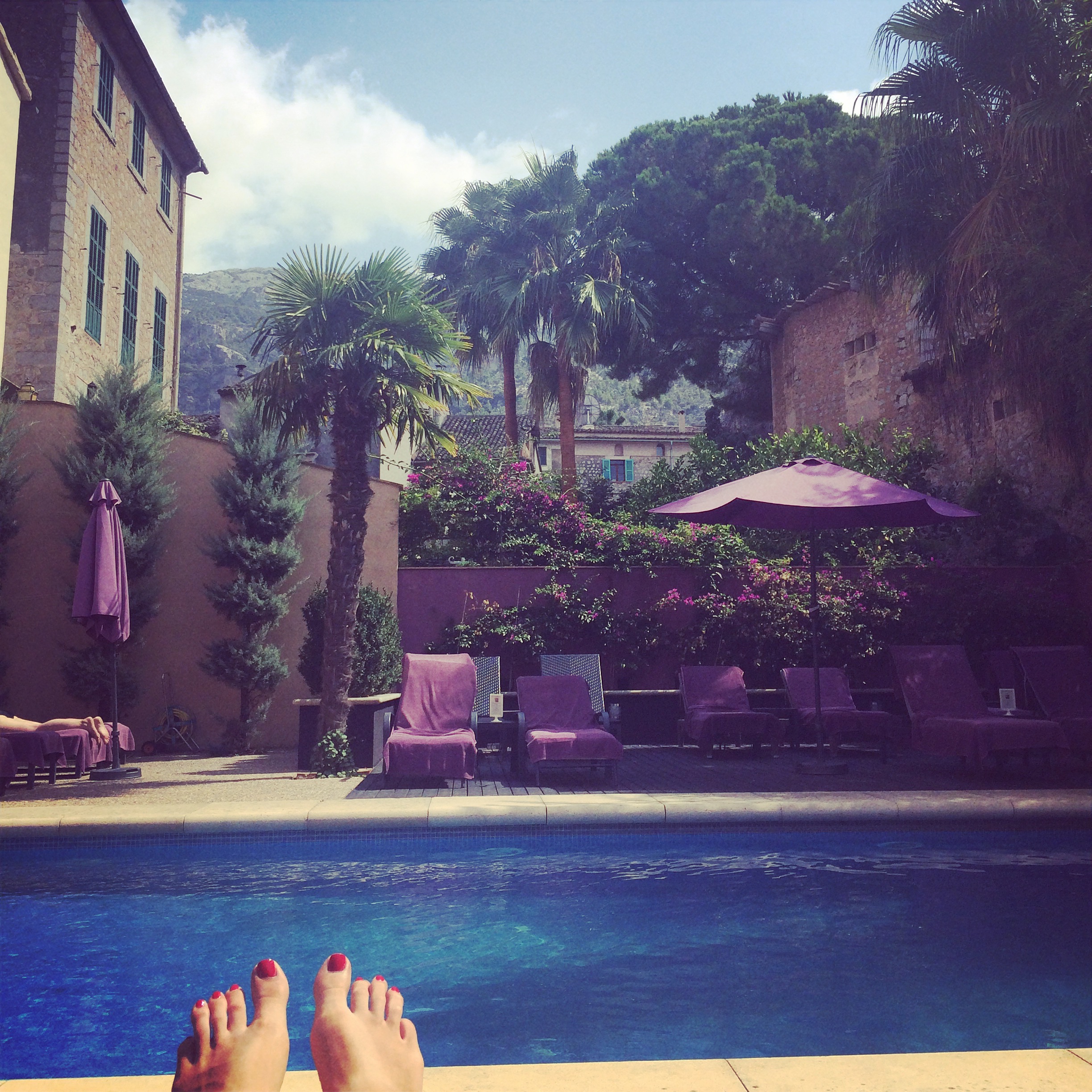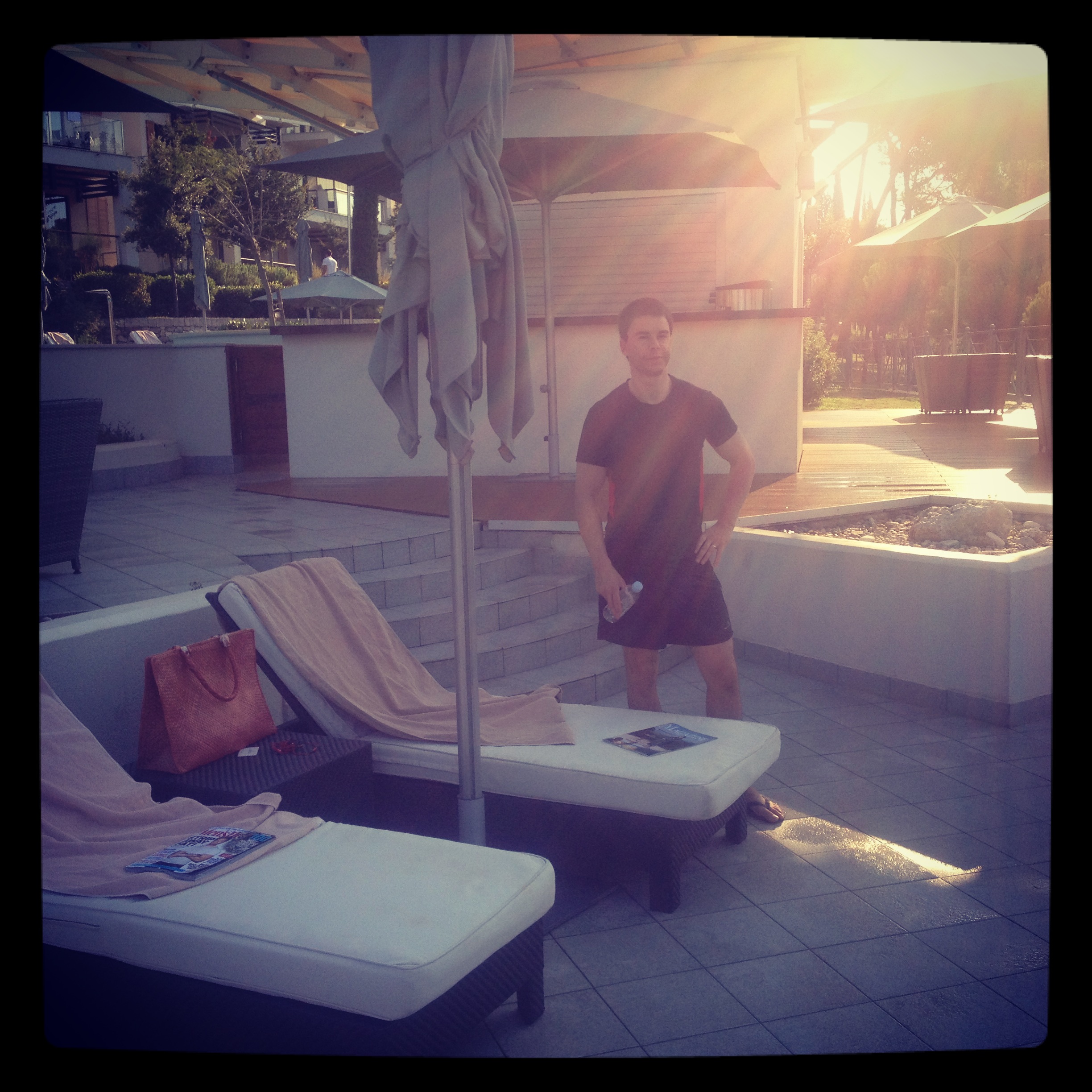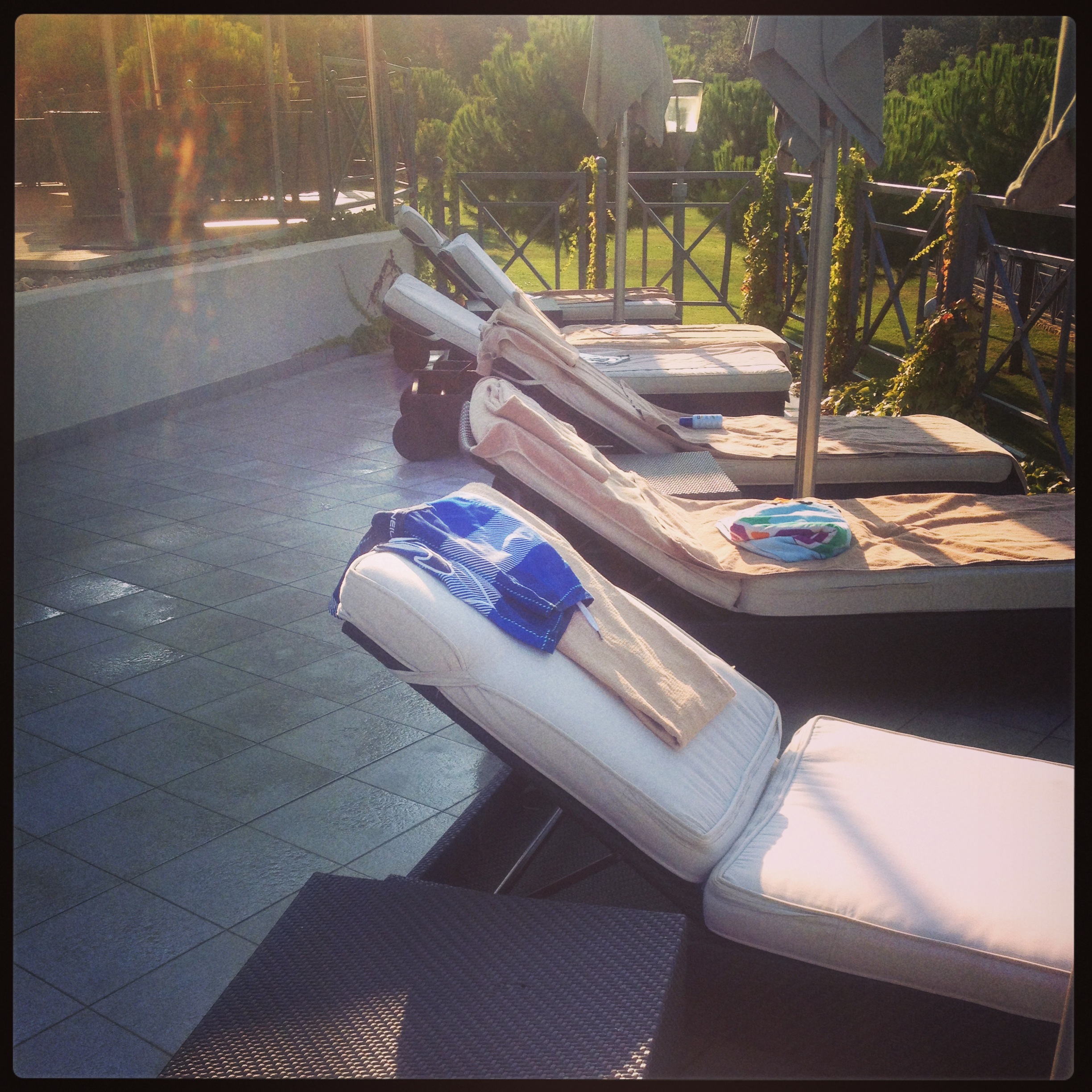 I furtively scamper down to the pool area. By the time I have carted off six loungers (some double ones- who knew?!) and restored the grassy knoll to its original half crescent sunbed formation, I have worked up quite the sweat.
