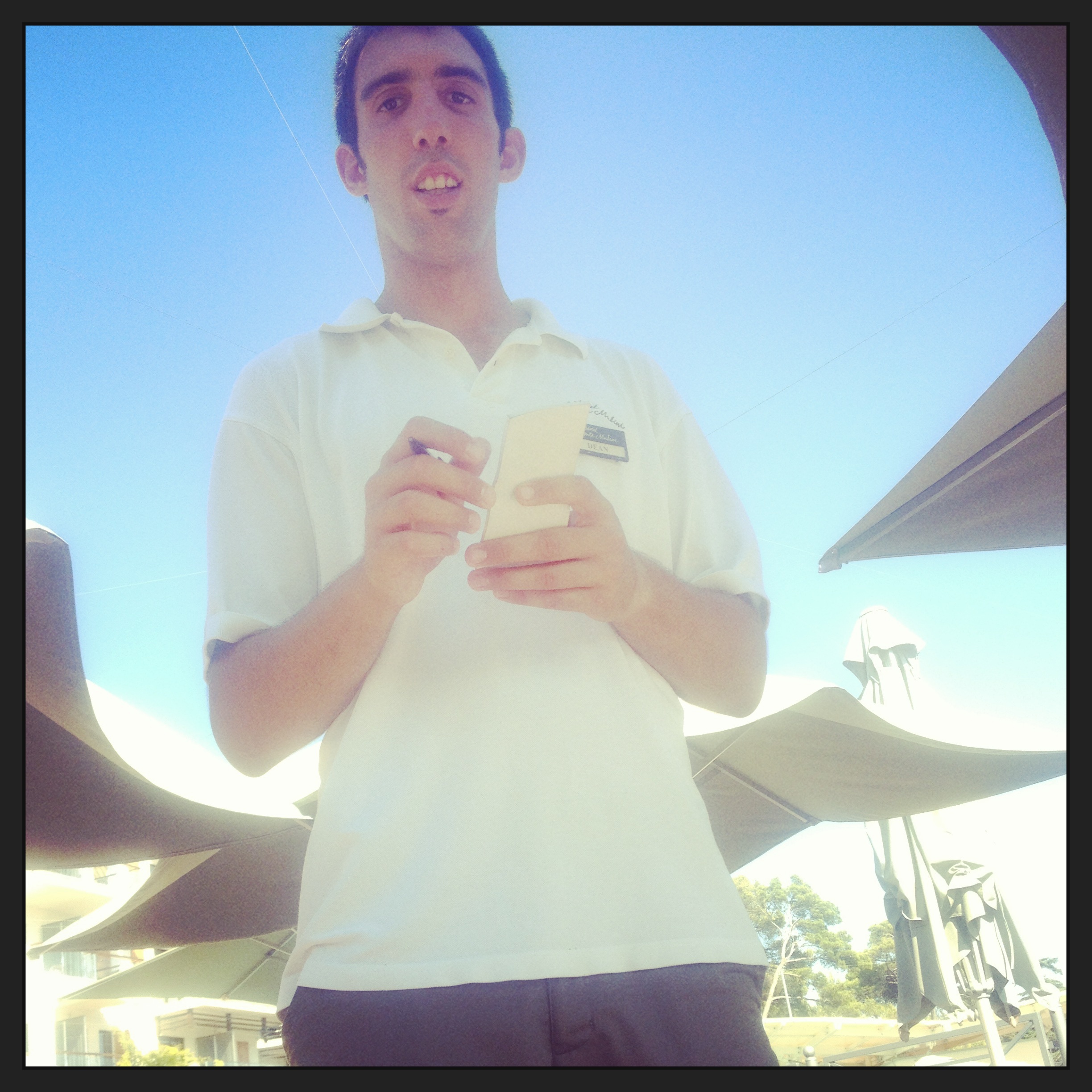 I turn back just in time to see feeble Filipo wheeling the sun loungers BACK to where I had moved them from, with larger-than-life Dave swaggering brashly behind him.